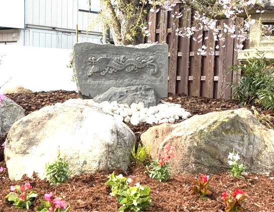 が描かれた石像が置かれています。