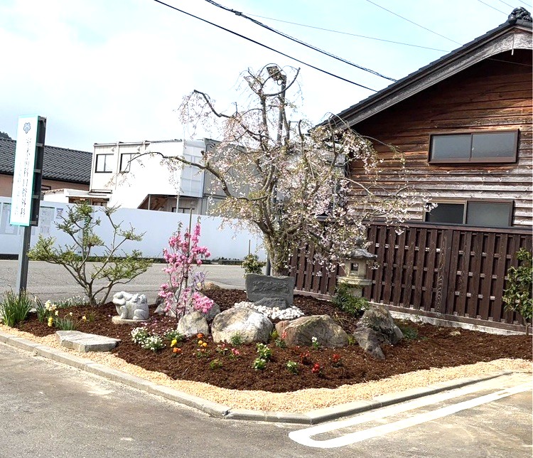 駐車場に入って最初に桜の花がお出迎えしてくれます。